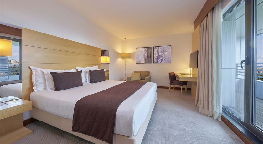 Suite located on the highest floors of the hotel, offers a view over Lisbon. It allows occupancy for 1 or 2 people, air-conditioned, comfortable and cozy, with wardrobe in the style "walk in closet", living room, mini bar, free wifi, flat screen TV with premium sports channels and amenities. It benefits from coffee maker, espresso machine, water, tea, bathrobe and slippers.